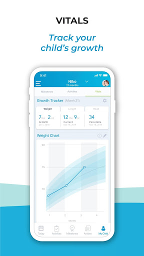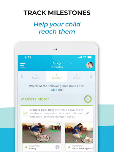 The app offers visual reports on milestone achievements and growth over time, helping you monitor your child's development conveniently through the tracking tools.