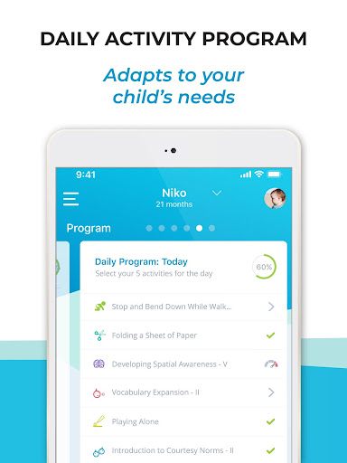 The app uses smart adaptive technology to tailor daily activities based on your child's age and progress, updating recommendations as your child develops.