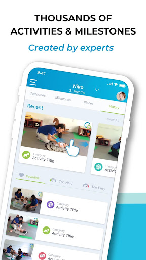 The app offers over 1,300 activities, instructional videos, milestone tracking, and personalized recommendations for areas like cognition, motor skills, and social-emotional growth.