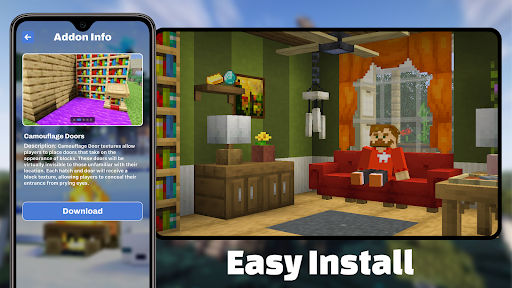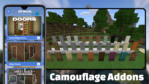 If you enjoy customizing your Minecraft PE world and want to add a touch of realism or stealth to your structures, this app is perfect for you. Whether you're a young gamer just starting out or an experienced builder looking to diversify your designs, the Camouflage Doors Mod for MCPE appeals to a wide audience. This mobile app offers a straightforward way to access new and creative door designs that elevate your gaming experience, especially for those who appreciate detailed customization options within a familiar app-based solution.