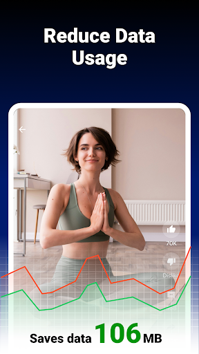 Tap the VPN icon on the main interface to turn it on; it provides unlimited, no-log secure connections for safe browsing and streaming.