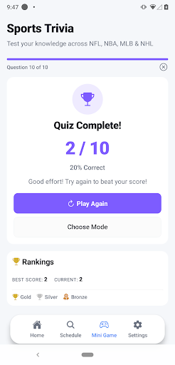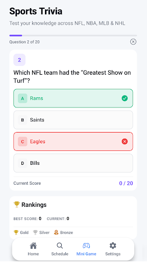 This sports mobile app is ideal for sports fans of all ages who want to stay updated on NFL, NCAA, NBA, and MLB games. Whether you're a busy professional, a student, or a casual viewer, this Android app caters to those looking for quick, accurate sports information on the go. If you love to keep tabs on scores and game stats without missing the action, this app provides a convenient and reliable solution tailored for passionate sports enthusiasts.