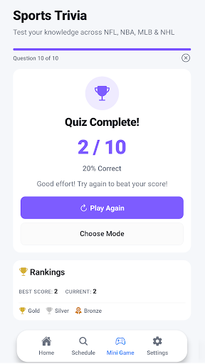 Clear layout makes it easy to find scores, schedules, and highlights quickly.