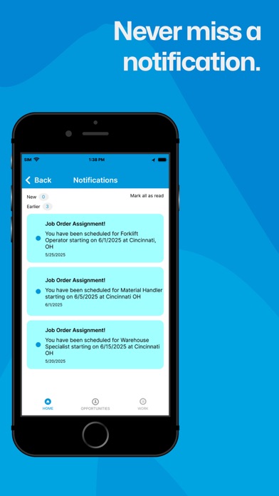 Staffmark WorkNOW provides instant alerts for new jobs and updates, improving responsiveness.