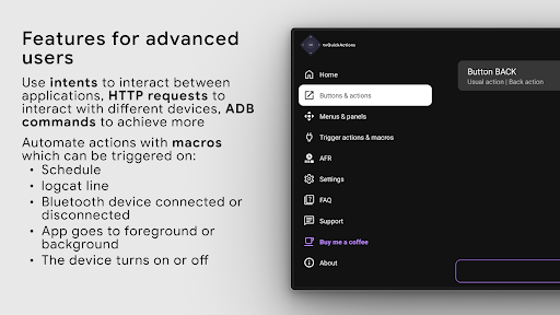 This app-based solution caters to users who frequently multitask and need instant control over various tools without digging through menus. For instance, if you often switch between different apps for work or entertainment, tvQuickActions Pro helps create a smoother workflow. It's also great for users who value privacy—thanks to its security features—and appreciate automation to reduce repetitive tasks. Overall, this Android app is perfect for anyone looking to personalize their device experience and improve productivity.