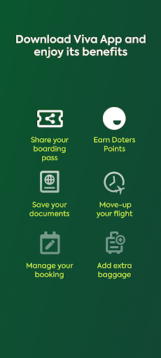 Download and open Viva, create an account, then follow the guided setup to access flight info, booking, and check-in features through the main menu.