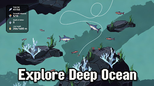 Use the physics-based angling mechanics by tapping and swiping to cast, reel, and adjust tension for a realistic fishing experience. Tutorial available in-game.