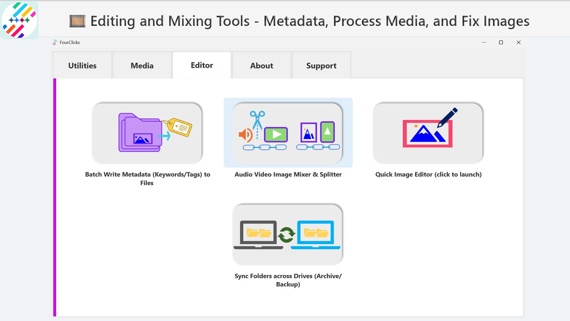 Designed to streamline your digital photography experience, FourClicks Media offers a comprehensive package for organizing, converting, and showcasing your photos in stunning 4K slideshows. Developed by FourClicks Manager, this Windows-based application stands out with its user-friendly interface and powerful features tailored for both casual users and professional photographers alike.