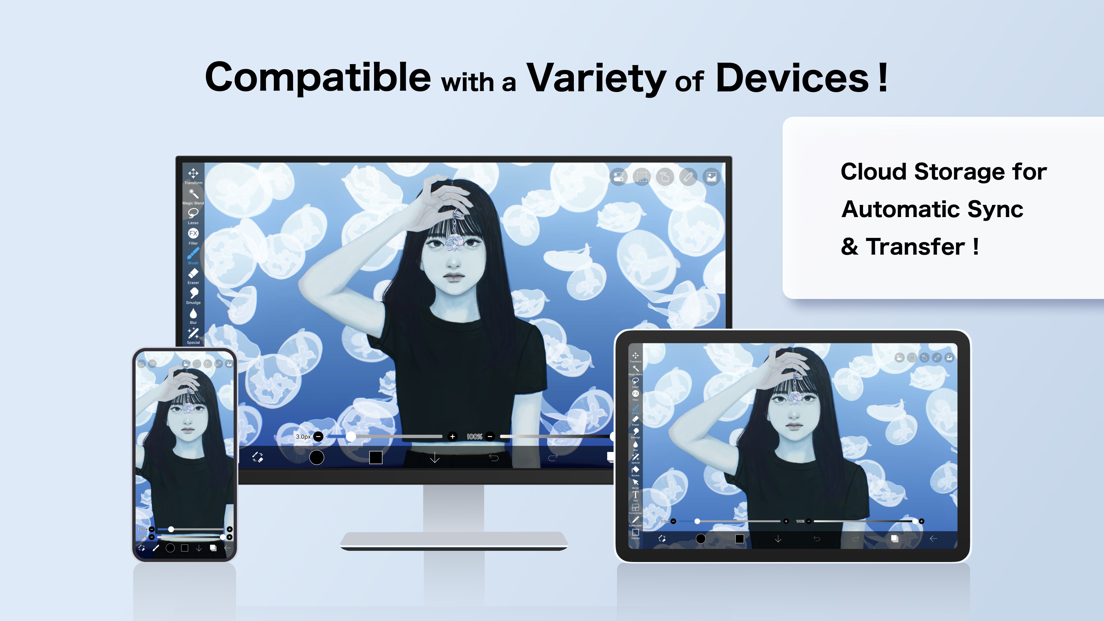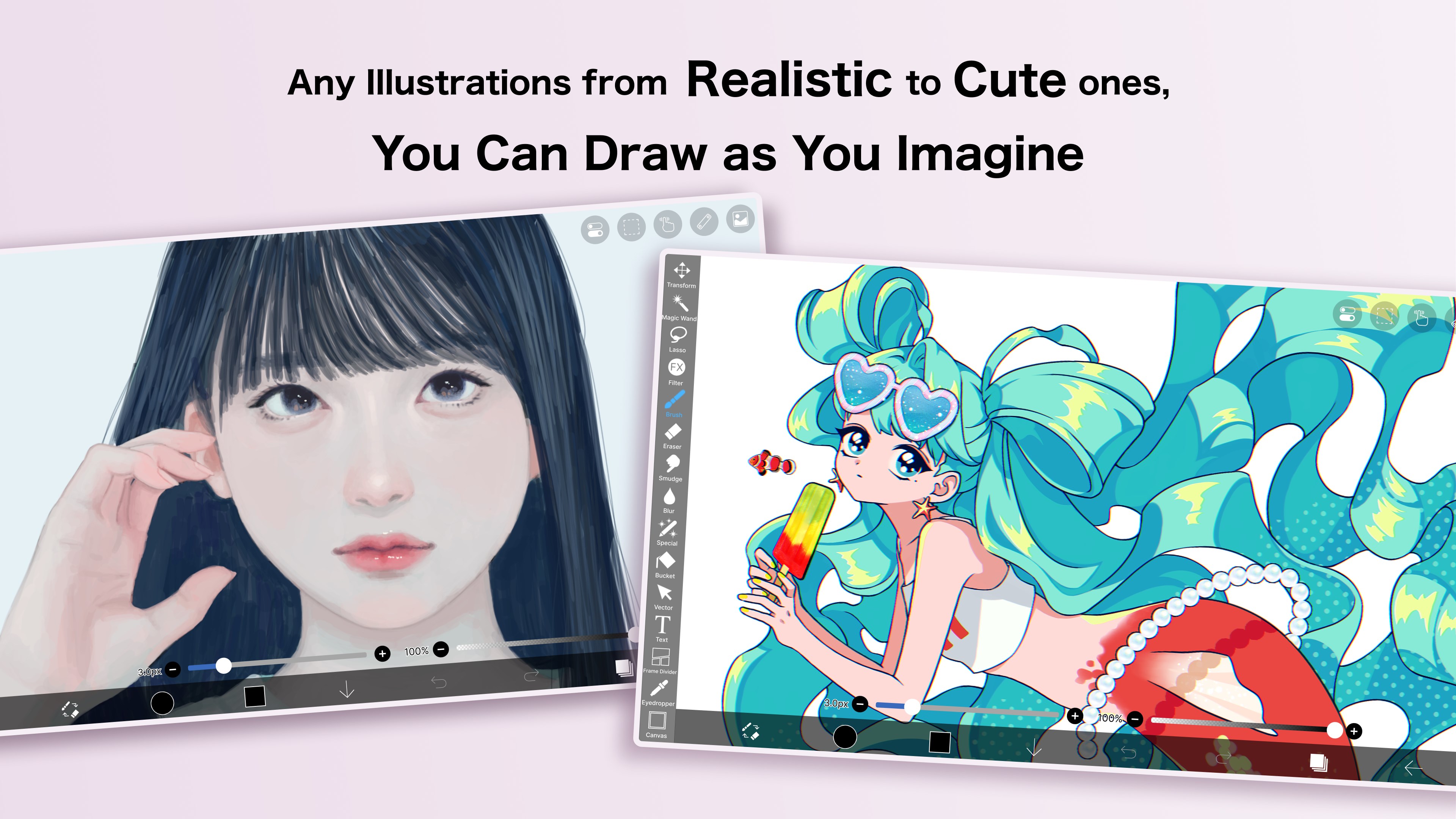 ibis Paint offers a user-friendly interface, a wide variety of brushes, recording tools, and guided tutorials on our YouTube channel to help beginners learn quickly.