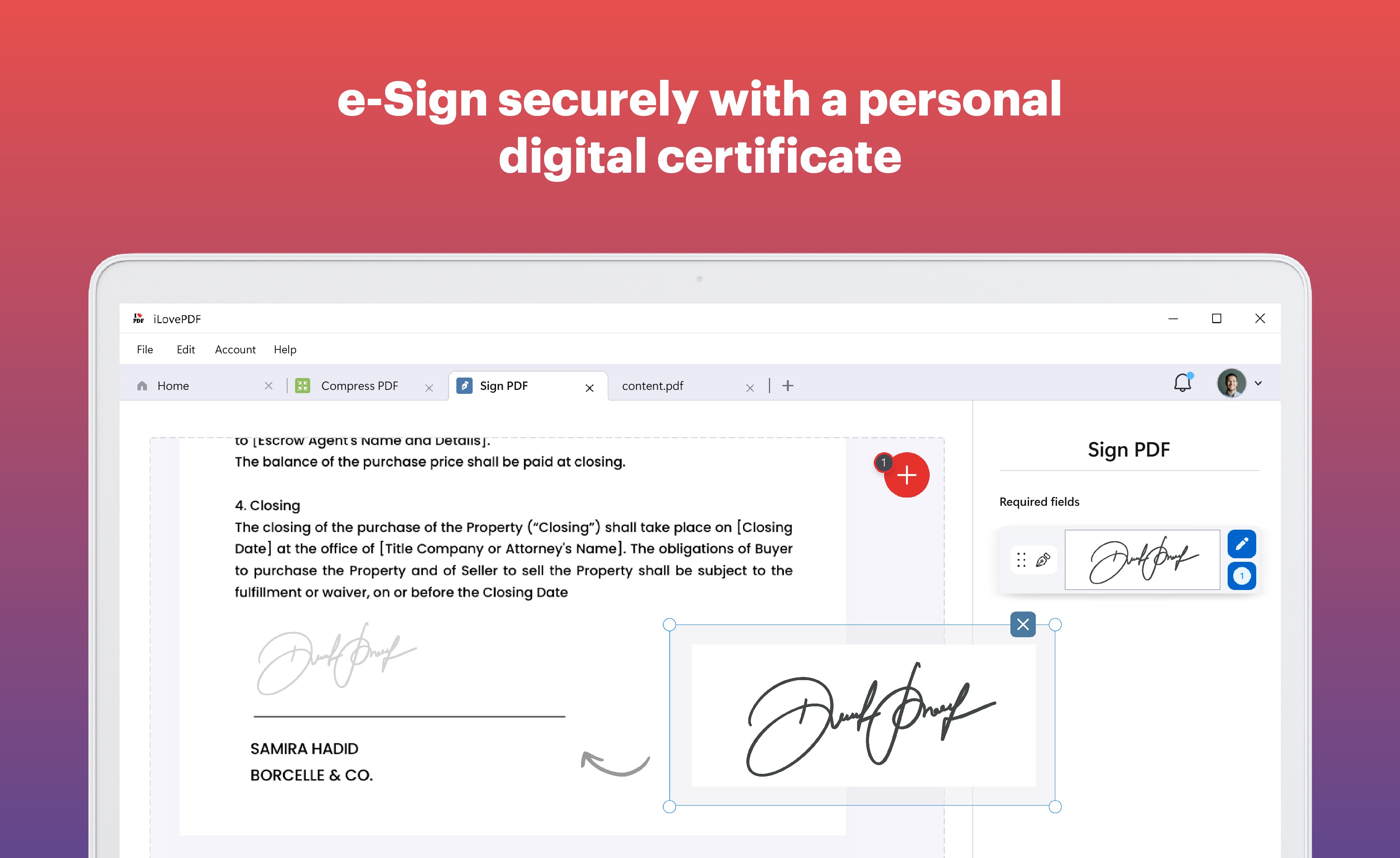 Yes, select 'Sign PDF' from the tools menu, then follow prompts to digitally sign with certificates or your handwritten signature.