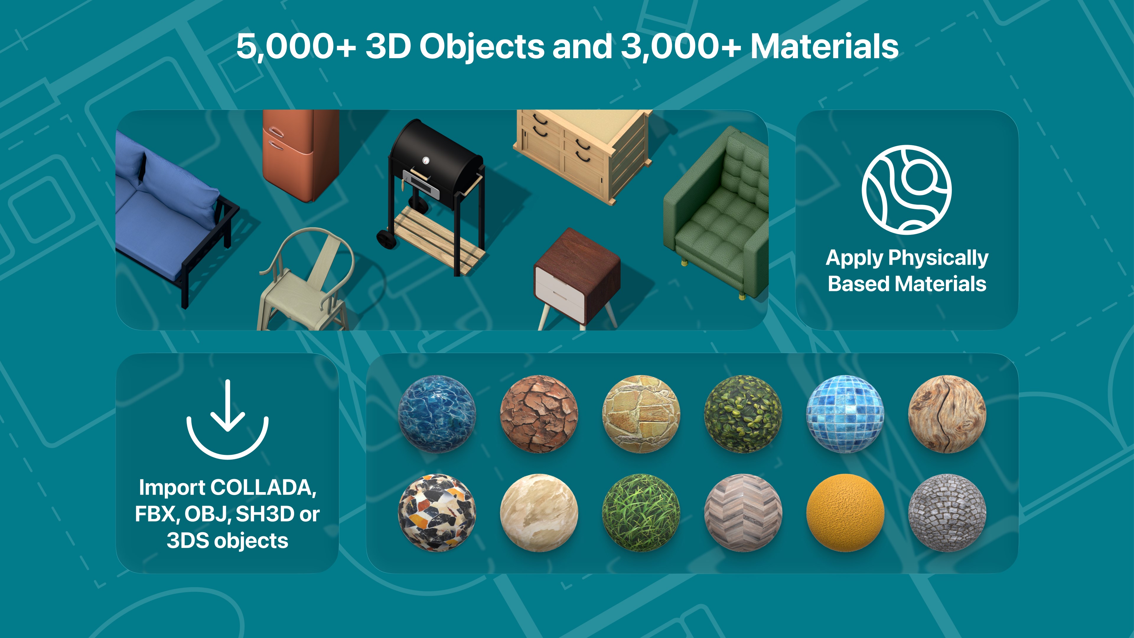 Live Home 3D Pro provides a vast selection of furniture, textures, and materials to customize designs richly.