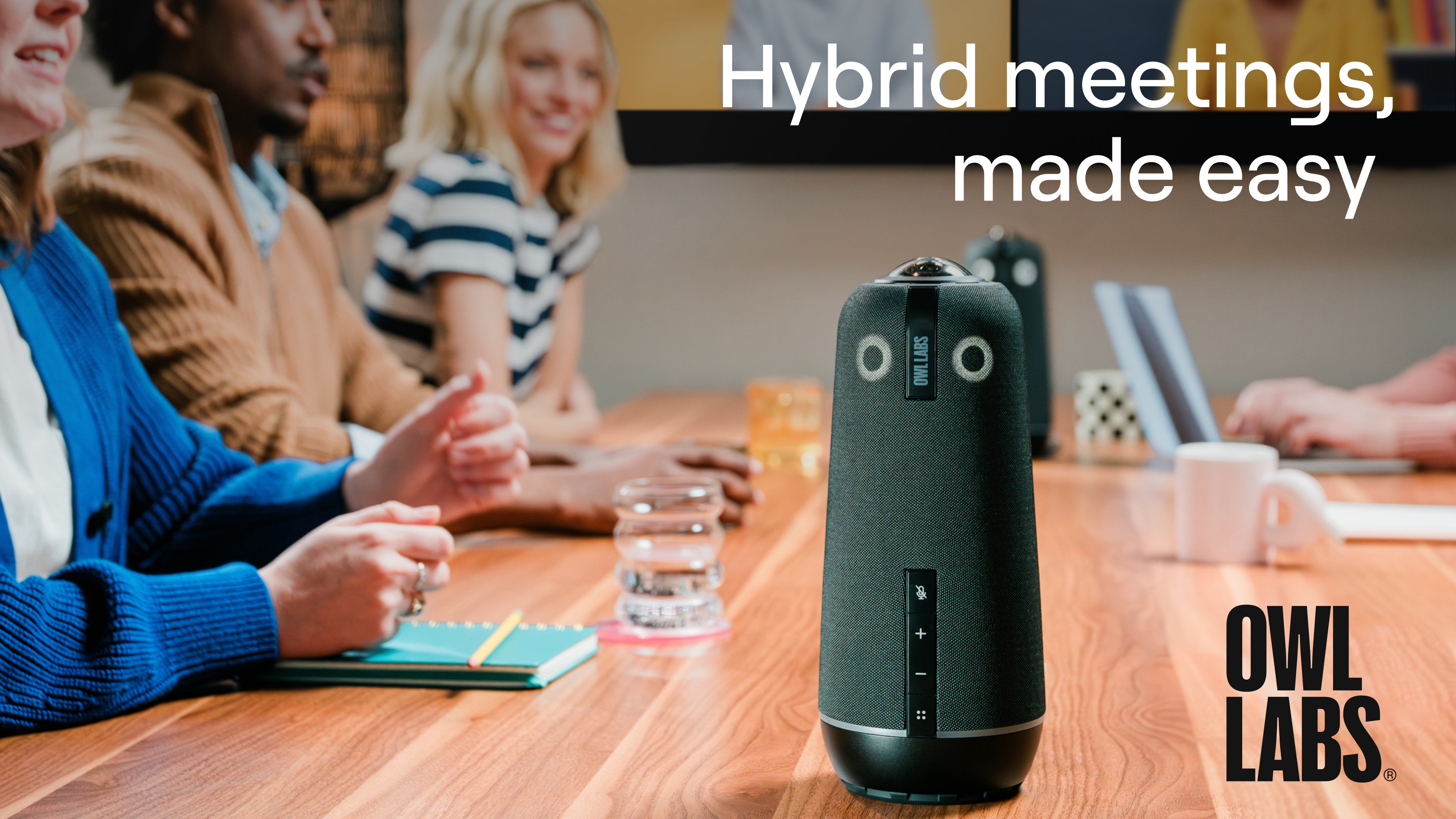 The device intelligently follows speakers during meetings, enhancing engagement and visibility.