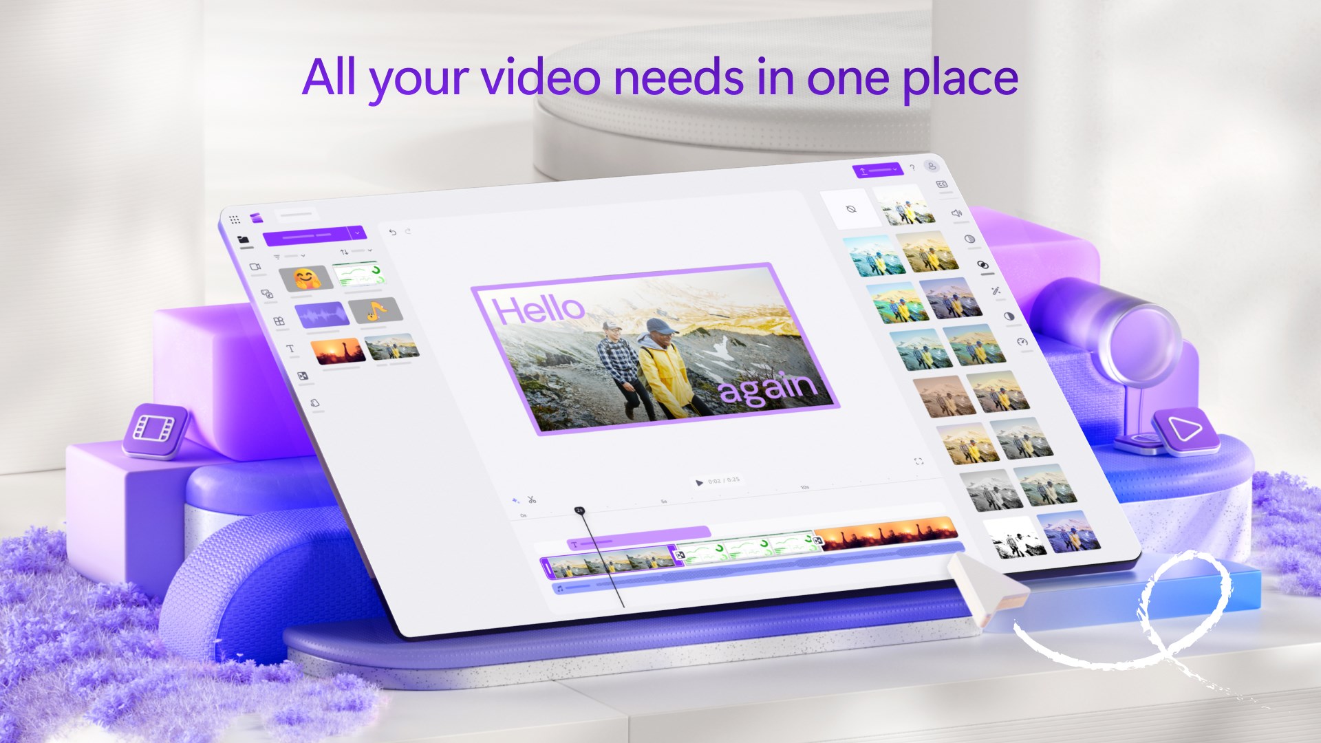 Offers a collection of stock videos, images, and music to enhance projects without external sourcing.