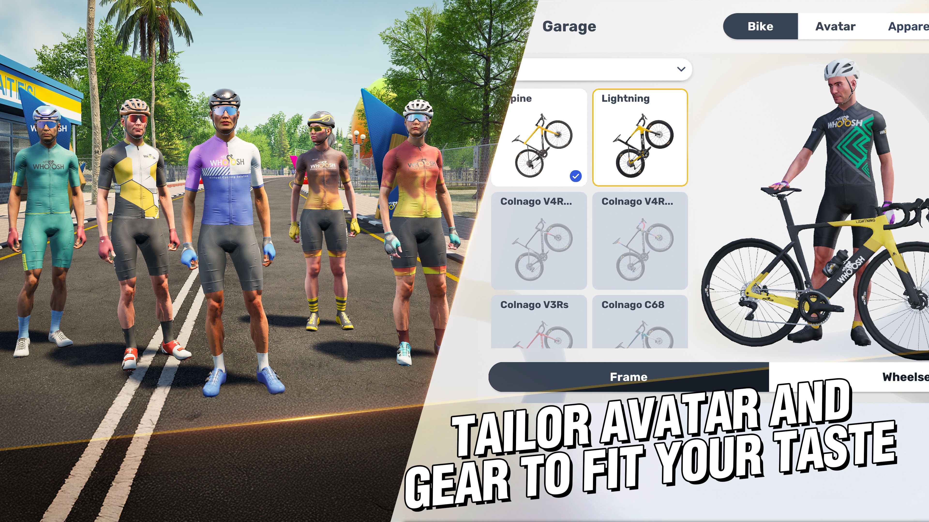 Yes, visit the Garage section to customize your avatar and select bikes and accessories from popular brands for a personalized experience.