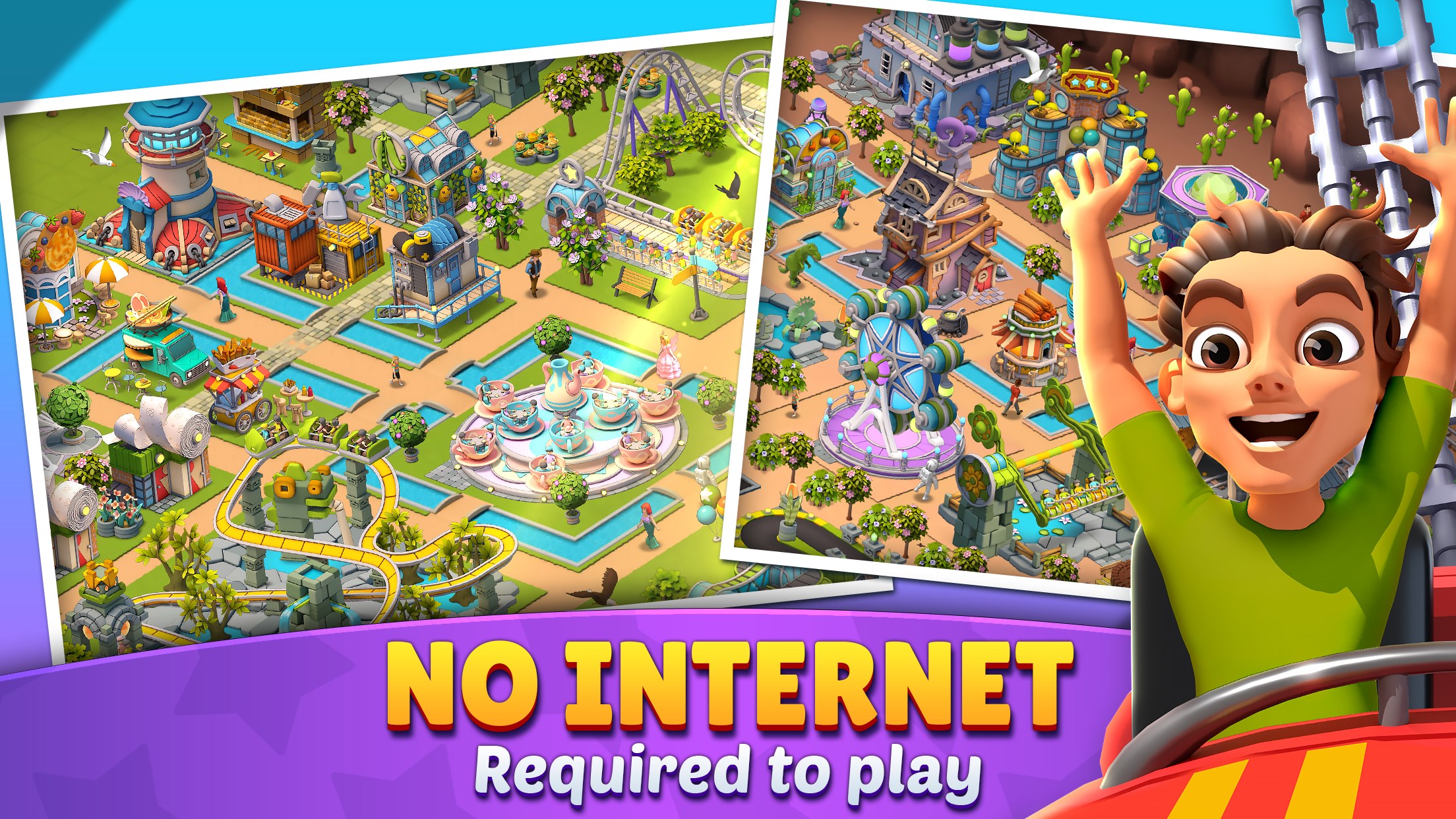 Yes, the game can be played offline, allowing you to build and manage your park anytime without an internet connection.