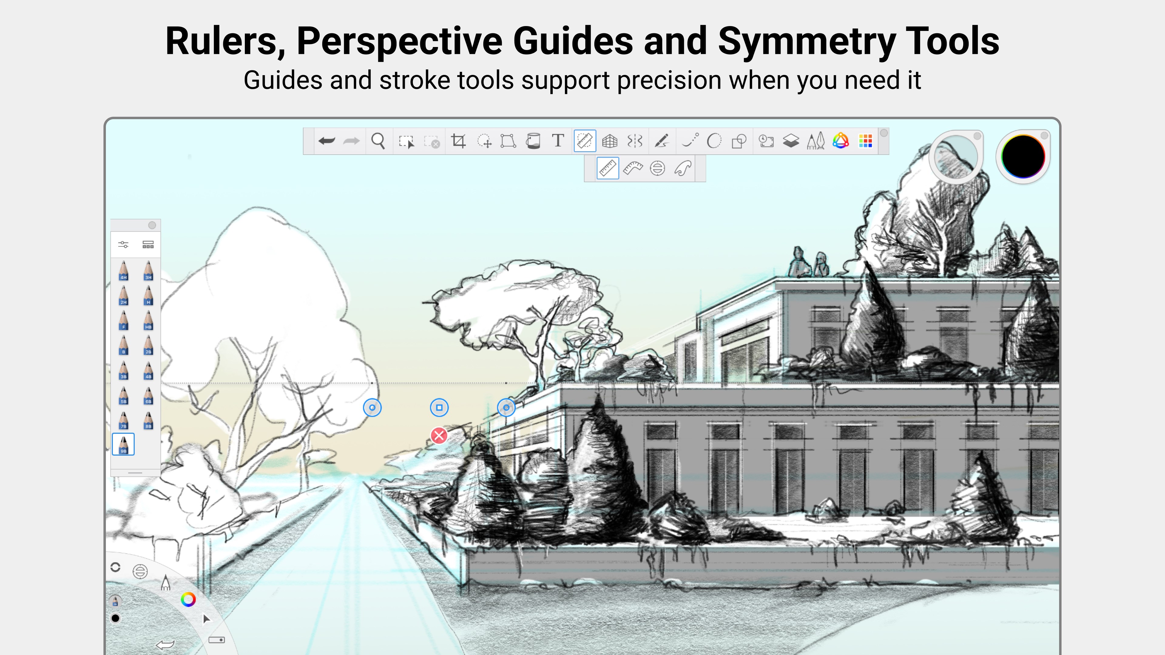 Tap the 'Ruler' icon in the toolbar, then place and adjust the guide to assist with accurate lines and shapes.