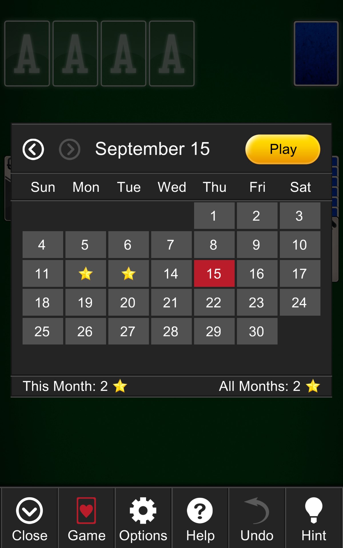 Offers multiple solitaire variations, such as Classic, Pyramid, and FreeCell, catering to different preferences.
